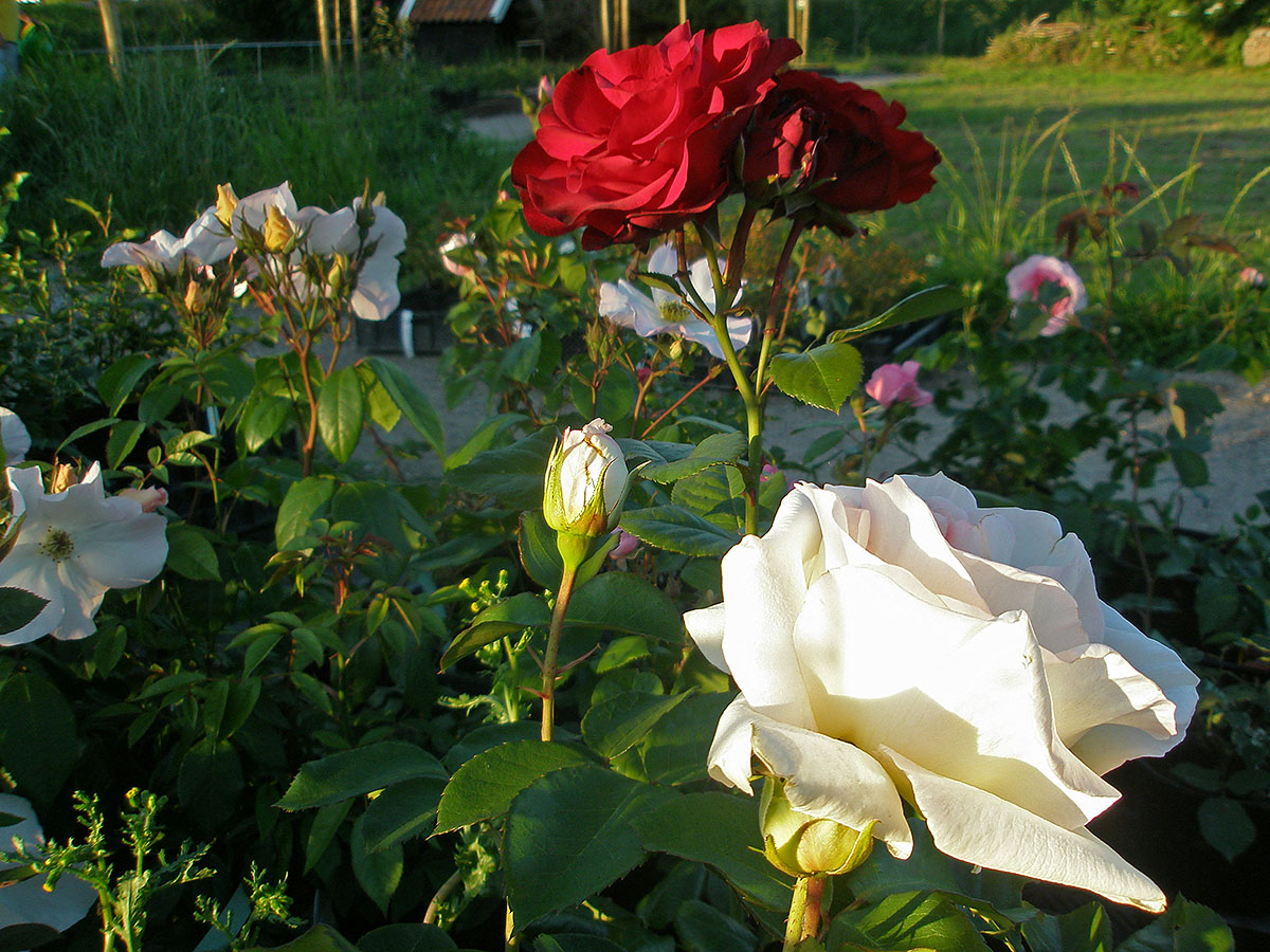 Veel historische-, Engelse-, nostalgische- en klimrozen.
